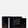 Estructura de dos cuerpos con sencillera. compartimientos para billetes. documentos y tarjetas. con detalle en contraste y brillo ligero.