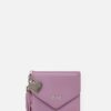 Esta pieza de fino cuero y silueta clásica. estilo sobre. posee un encanto particular. La magia se desprende de su pompón de cuero y del corazón metálico. este último con el logo de la marca. Detalles que le dan un giro a esta billetera. que cuenta con una estructura de dos cuerpos con compartimientos para billetes. tarjeteros y un sencillero exterior. Un verdadero encanto funcional.