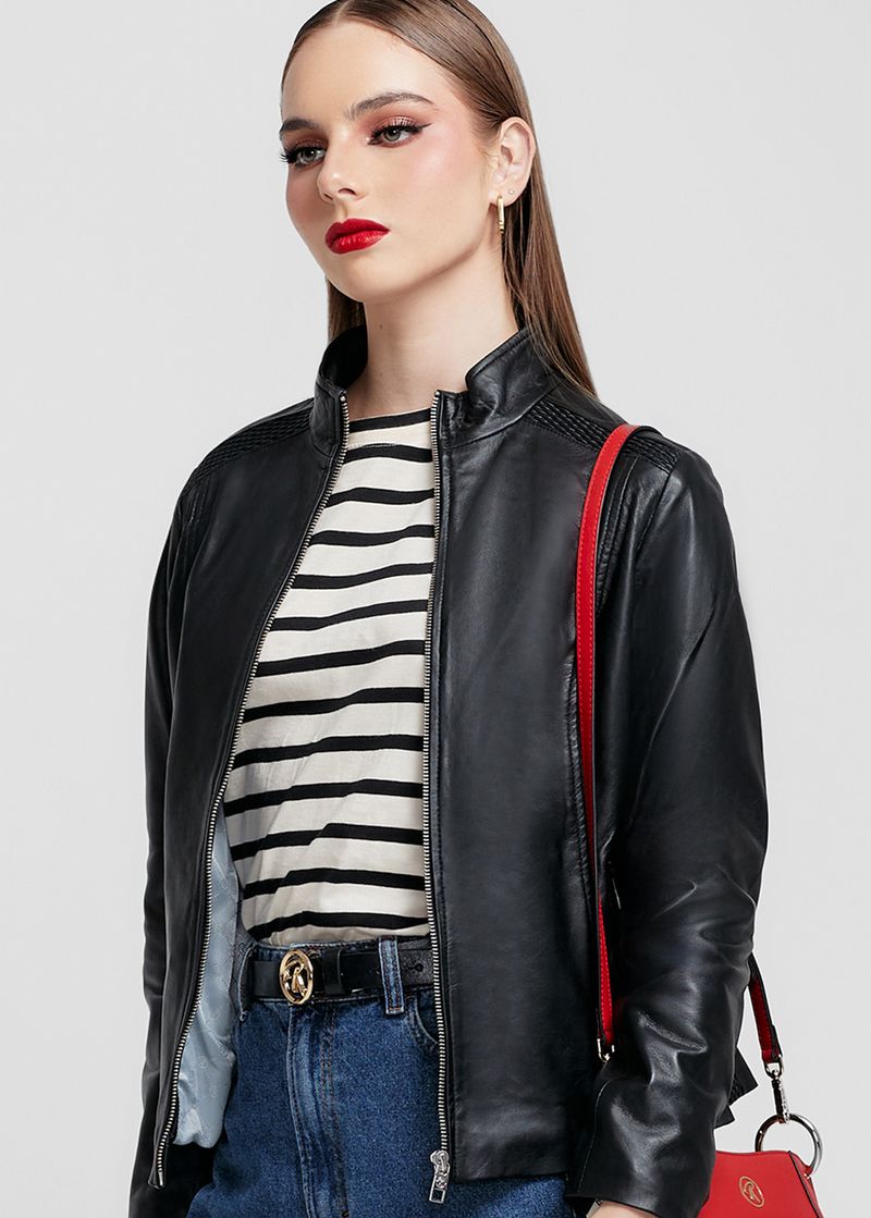 CASACA DE CUERO CON DIFERENTES TEXTURAS