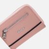 Monedero casual en cuero grabado con múltiples compartimientos para tarjetas y monedas.