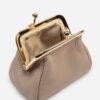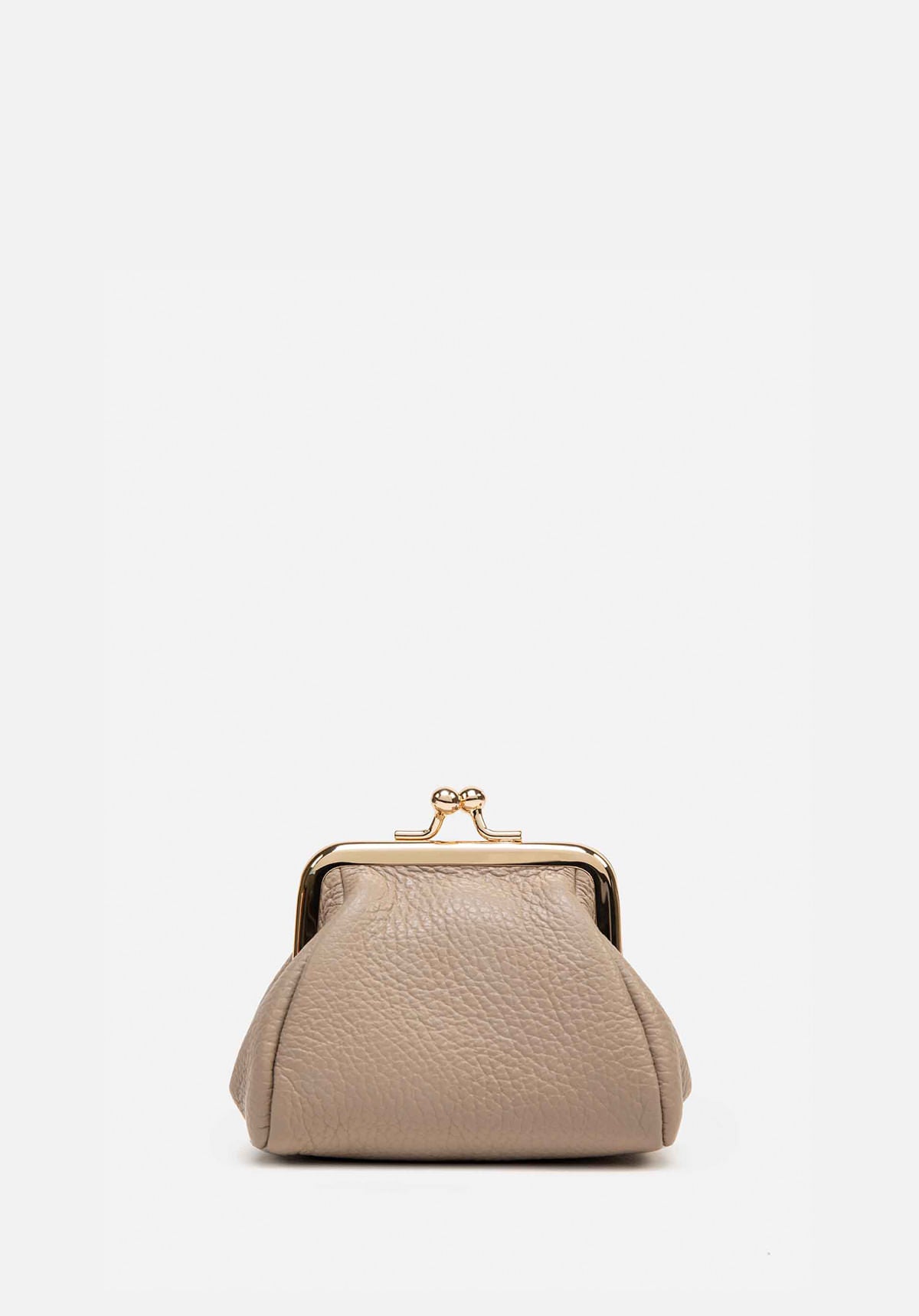 Un toque de brillo en la palma de tu mano. Golden Click es el monedero perfecto para llevar lo esencial con estilo. Su bisagra dorada abre paso a un único compartimiento práctico y compacto, ideal para esos pequeños tesoros del día a día. Hecho de cuero con acabado granulado, combina elegancia y funcionalidad en un diseño encantador.