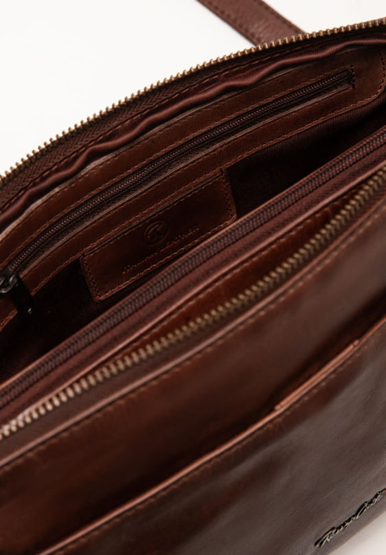 Elaborado en cuero natural con acabado envejecido, este morral combina suavidad al tacto y estilo auténtico. Su diseño cuenta con varios compartimientos y bolsillos internos que permiten mantener todo en orden, además de una correa ajustable para llevarlo al hombro o cruzado.